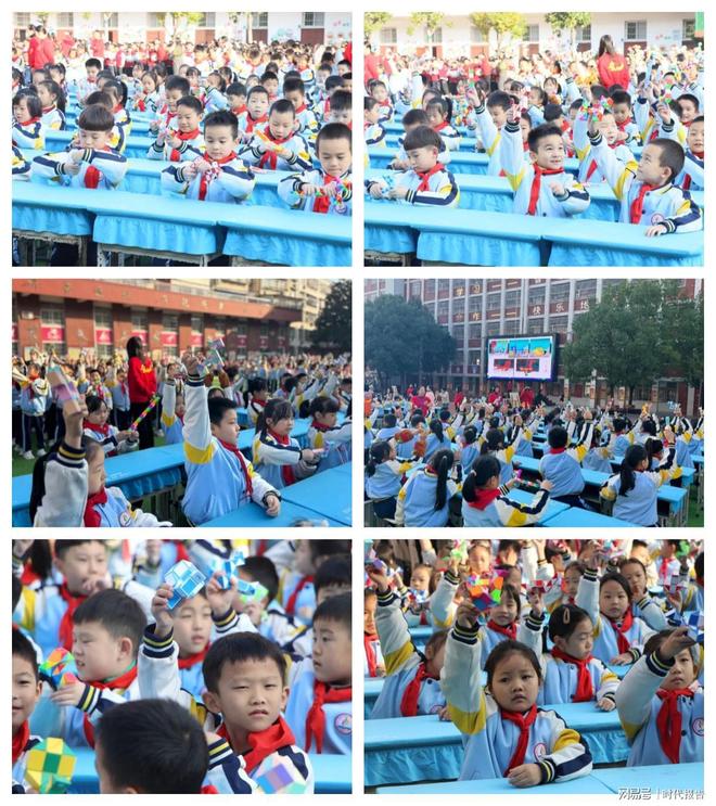 思维运动会伊始,便迎来一个惊喜高潮。六年级的魔方高手们作为开场嘉宾,为全场带来了一场精彩的三阶魔方速拧表演。只见他们手指翻飞,色块律动,短短几十秒内,杂乱无章的魔方便被迅速复原,速度快得令人惊叹。这场高水平的表演瞬间点燃了全场的热情,也正式拉开了思维运动会的序幕。
